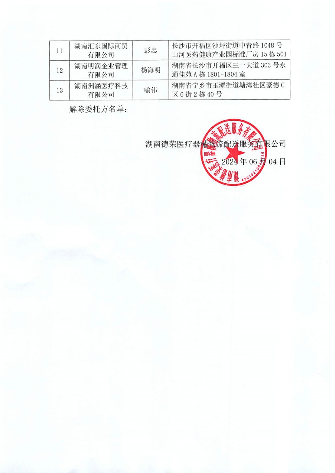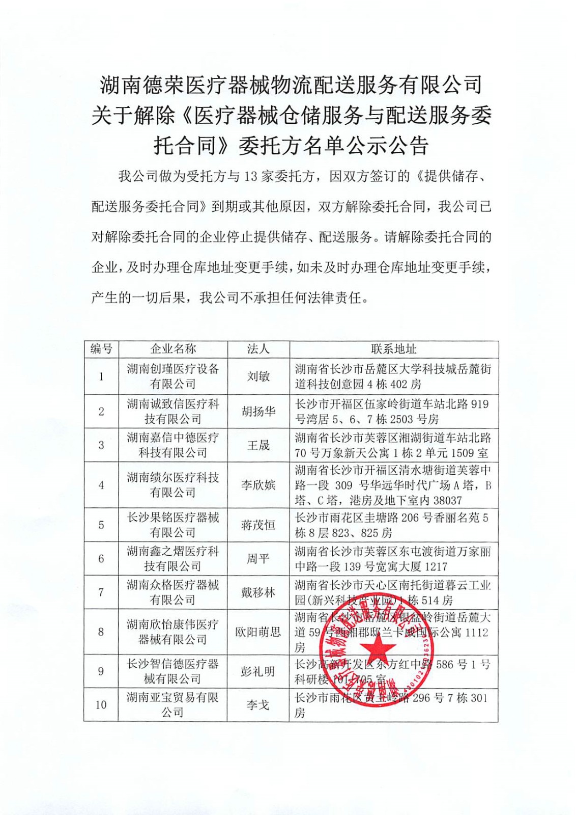 關(guān)于解除《醫(yī)療器械倉儲(chǔ)服務(wù)與配送服務(wù)委托合同》委托方名單公示公告