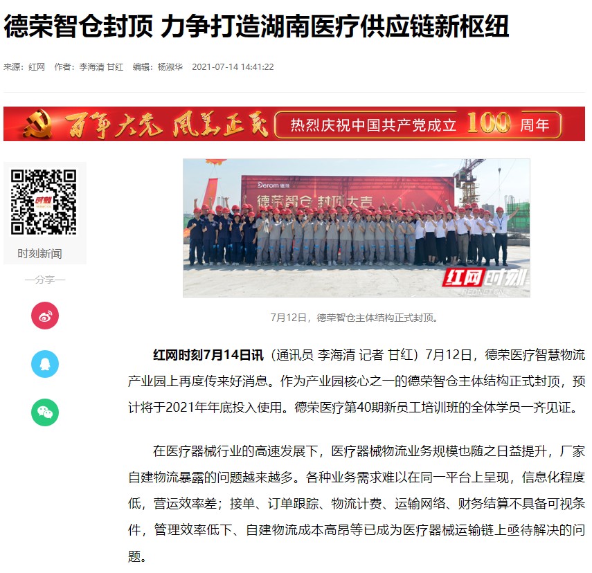 【紅網(wǎng)】德榮智倉封頂 力爭打造湖南醫(yī)療供應(yīng)鏈新樞紐
